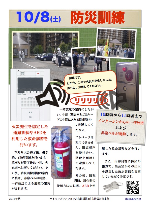 10月8日(土)防災訓練実施のお知らせ
