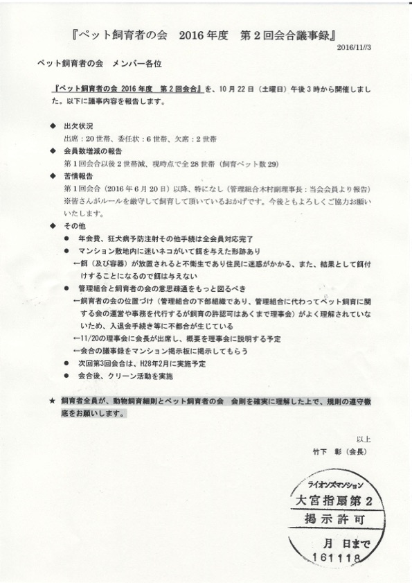 ペット飼育者の会2016年度第2回議事録