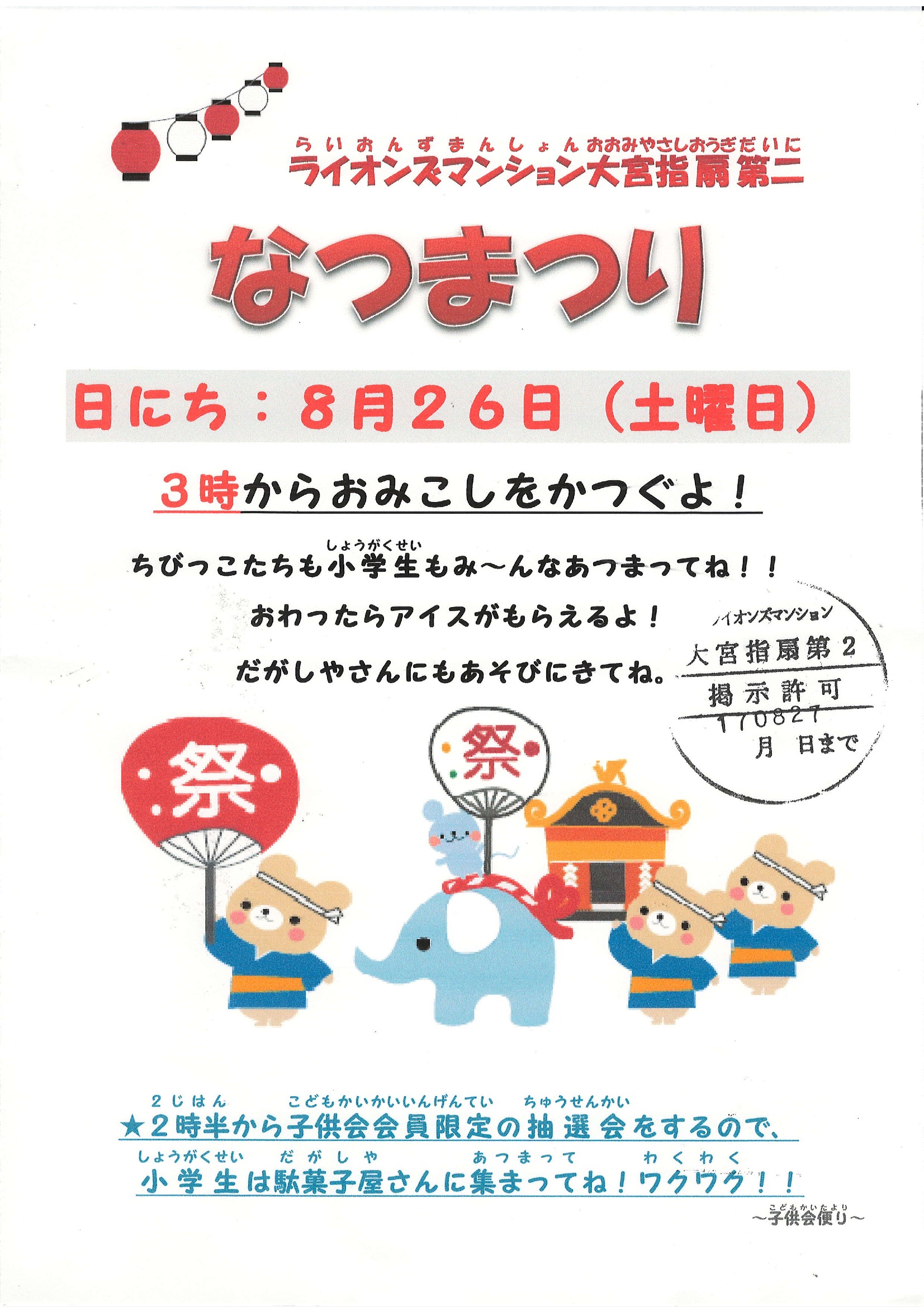 8月26日(土)夏祭り子供みこしのお知らせ