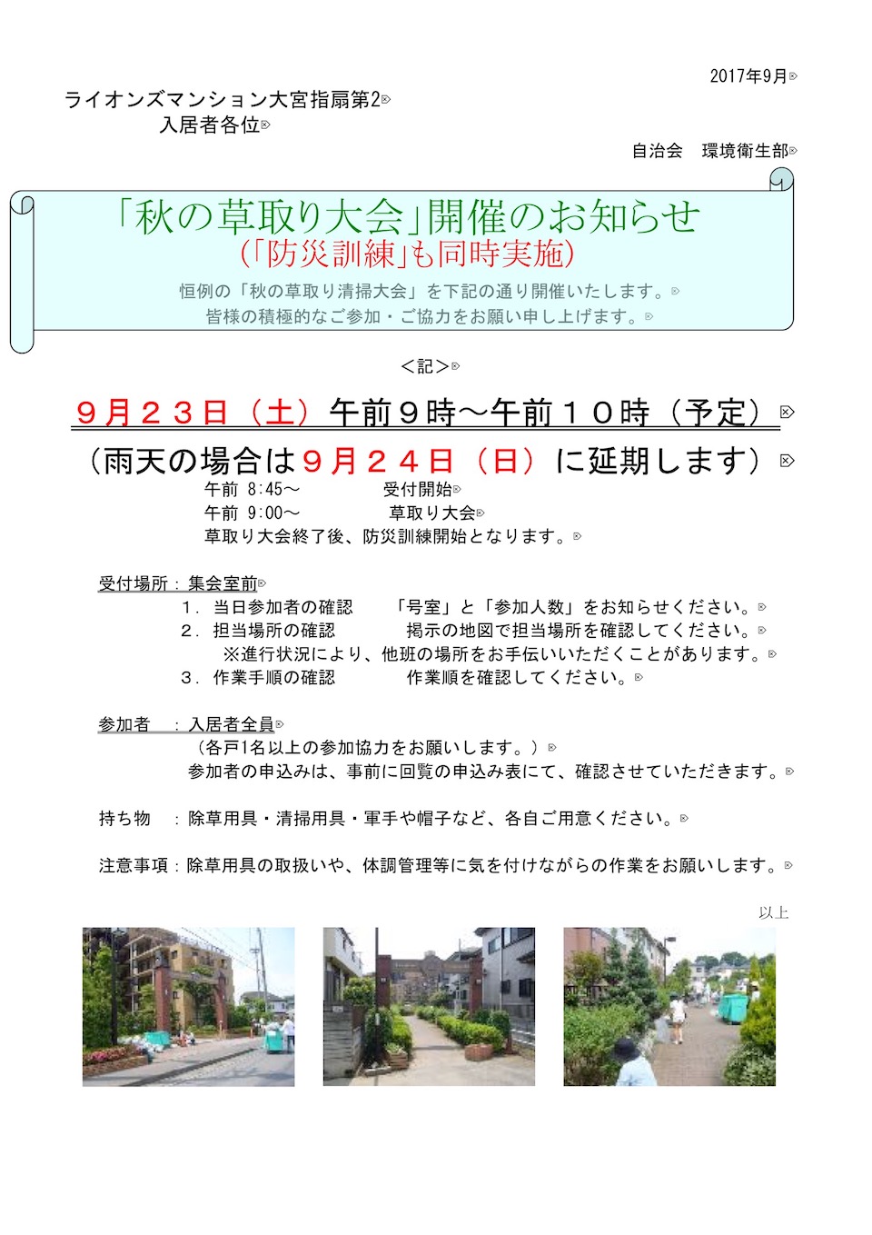 9月23日(土)秋の草取り大会開催のご案内