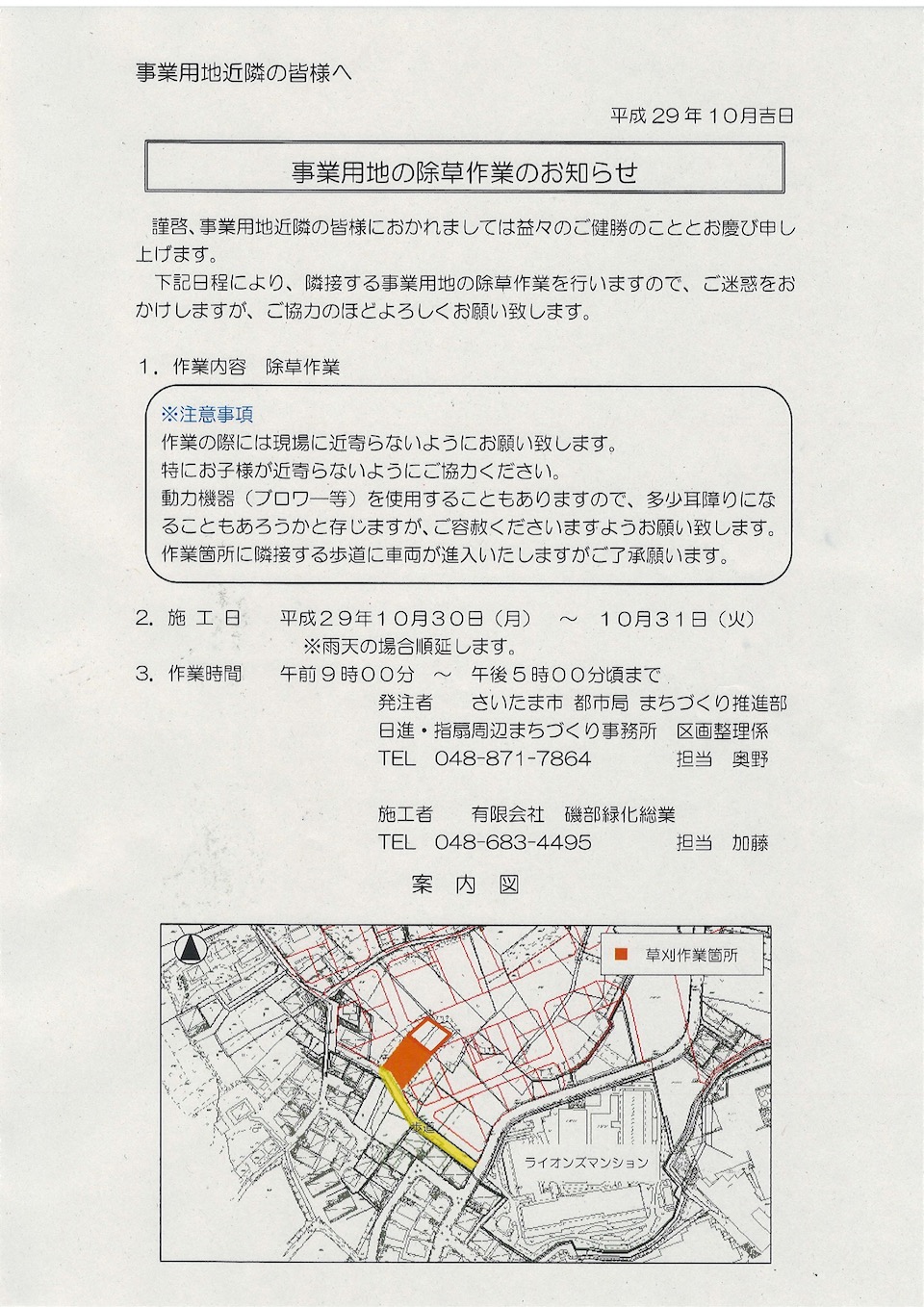 10月30日(月)〜31日(火)除草作業実施のお知らせ
