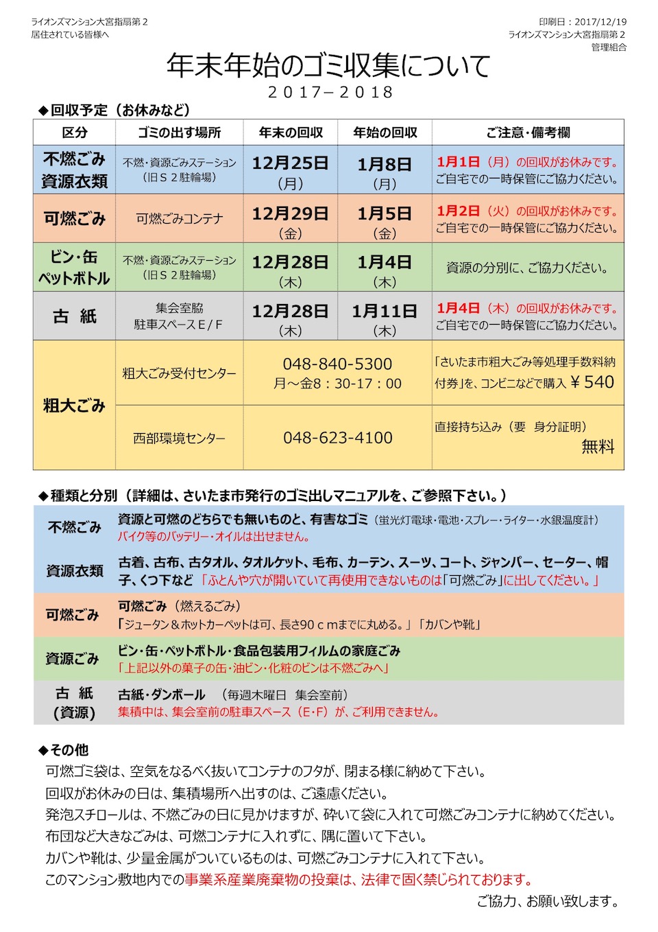 年末年始のゴミ収集について