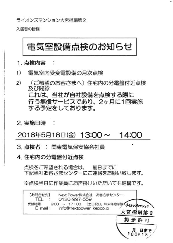 5月18日(金)電気室点検のお知らせ