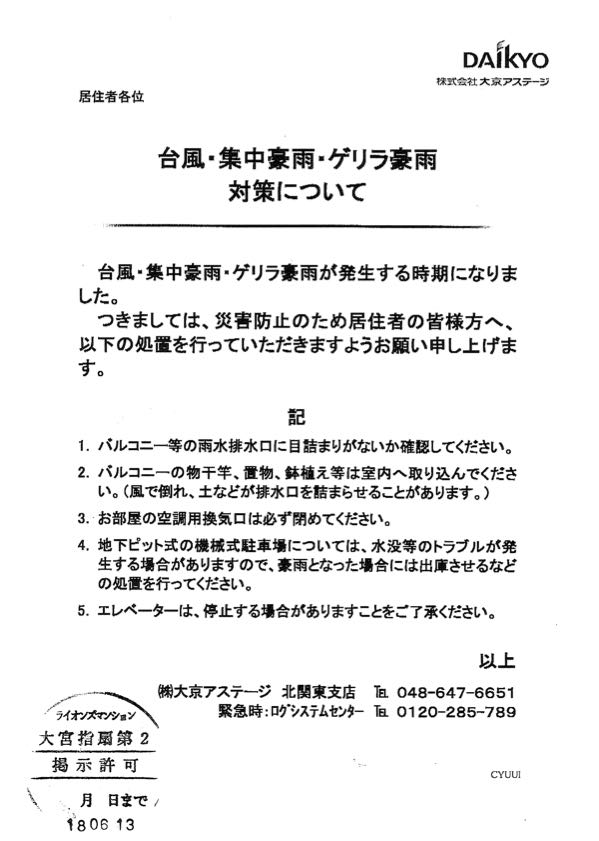 台風・集中豪雨・ゲリラ豪雨対策について