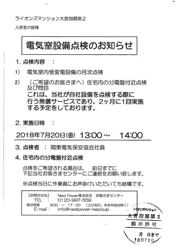 7月20日(金)電気室設備点検のお知らせ