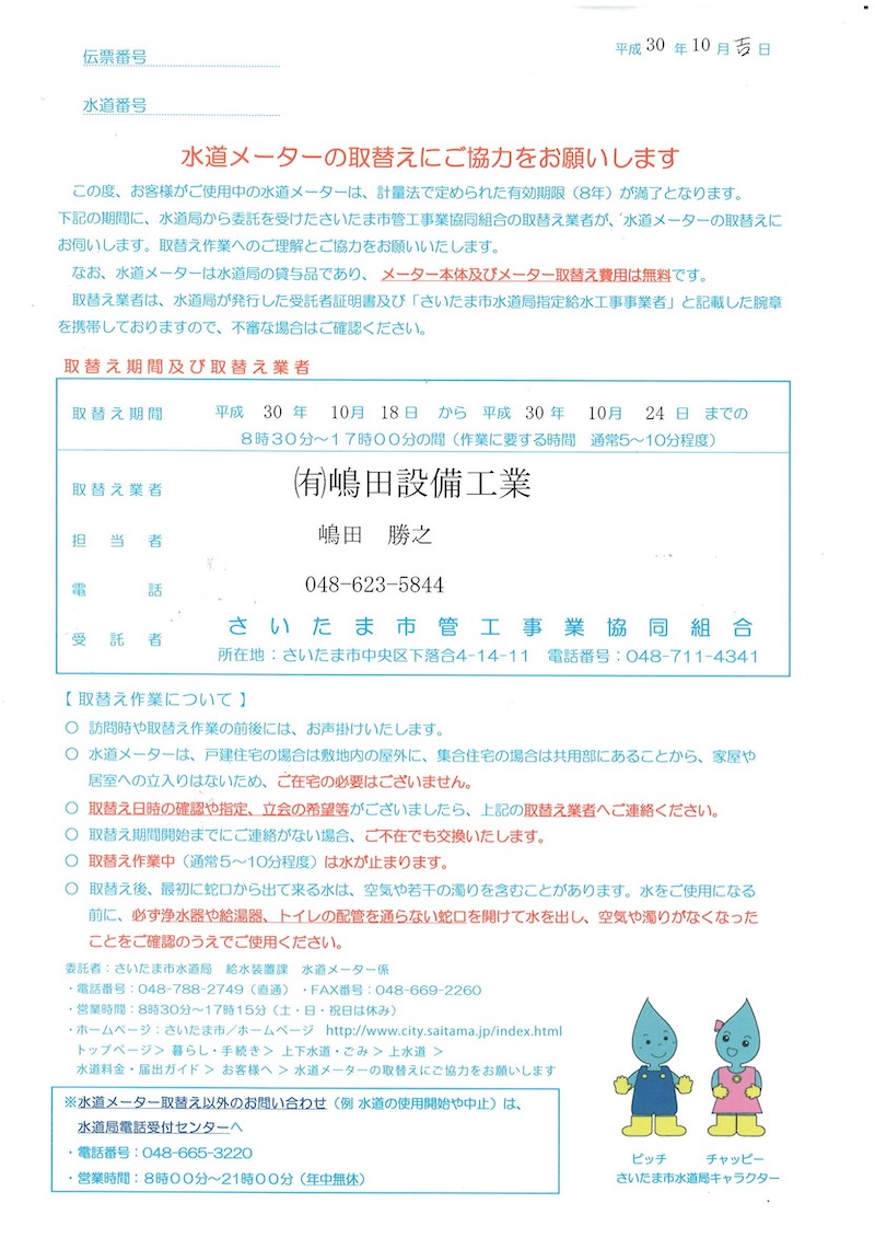 10月18日〜24日水道メーター取替え
