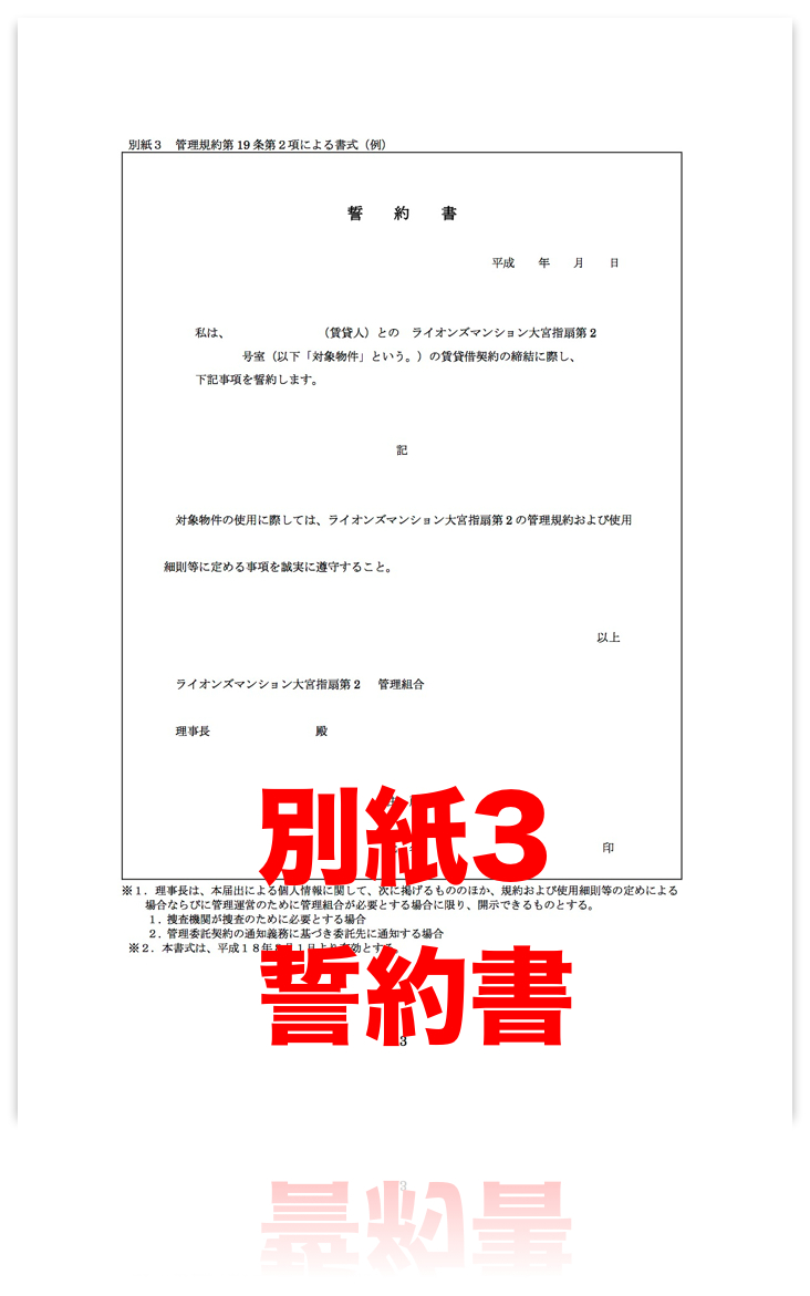 別紙3 管理規約第19条第2項による書式(例) 誓約書 2014年3月7日 732 × 1171 別紙3 管理規約第19条第2項による書式(例) 誓約書 別紙3 管理規約第19条第2項による書式(例) 誓約書 別紙3 管理規約第19条第2項による書式(例) 誓約書