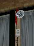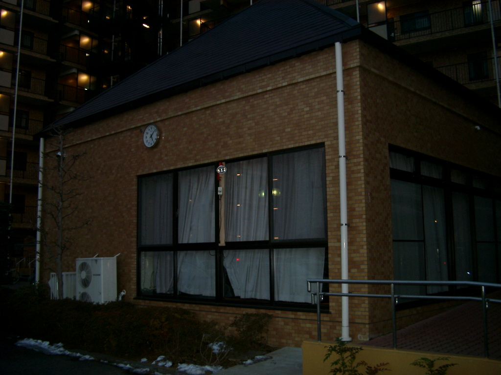 防犯用センサーライトを、集会室の駐車場側に試験的に設置しました。