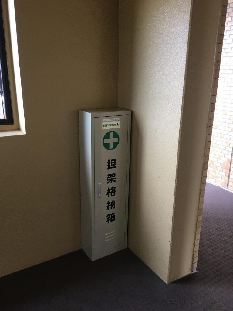 防災 担架を6階と11階に追加設置 2020年10月17日 lionsnew 10月16日(金)、新たに6階と11階のエレベータ(南棟西側)前通路に担架を設置しました。布製・折りたたみ式、救護者を4〜8名の搬送者で搬送できます。 関連記事: 関連記事はありません