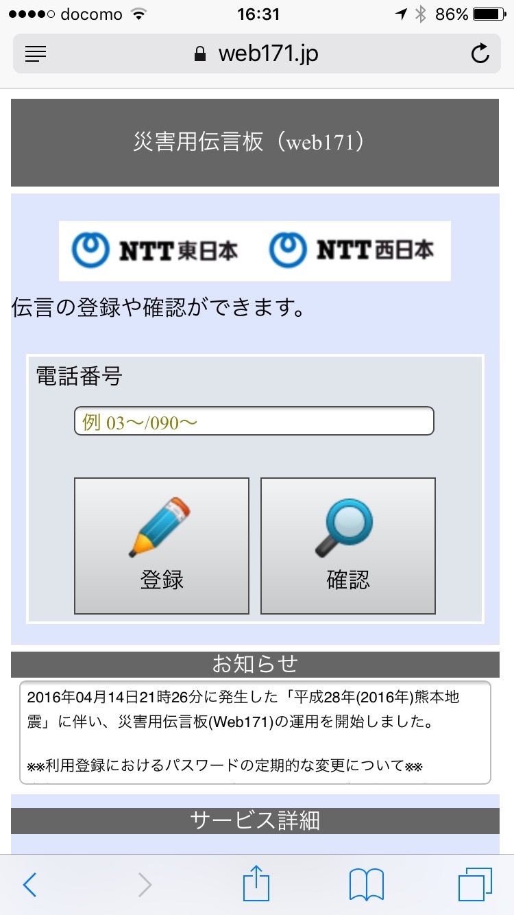 災害用伝言板(web171)